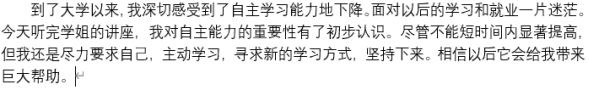 朱学姐对于同学提出的假期实习问题,建议我们提高自主意识,主动关注各类实习招聘网站和公众号,尽量申请规模较大的公司。她强调:培养自主意识,无论是在如今的学习生活中,还是在未来的工作岗位中,都有着举足轻重的地位。
