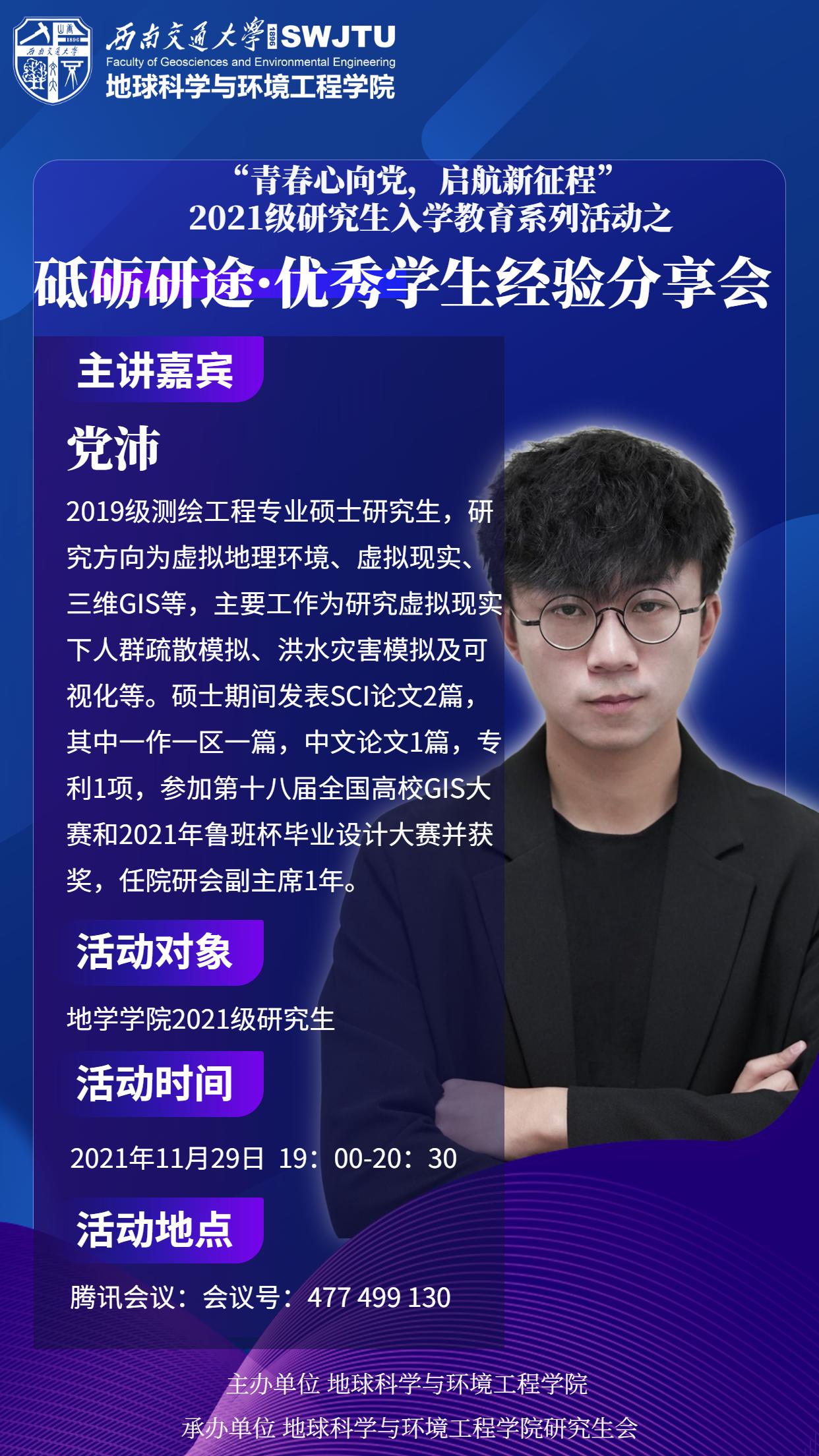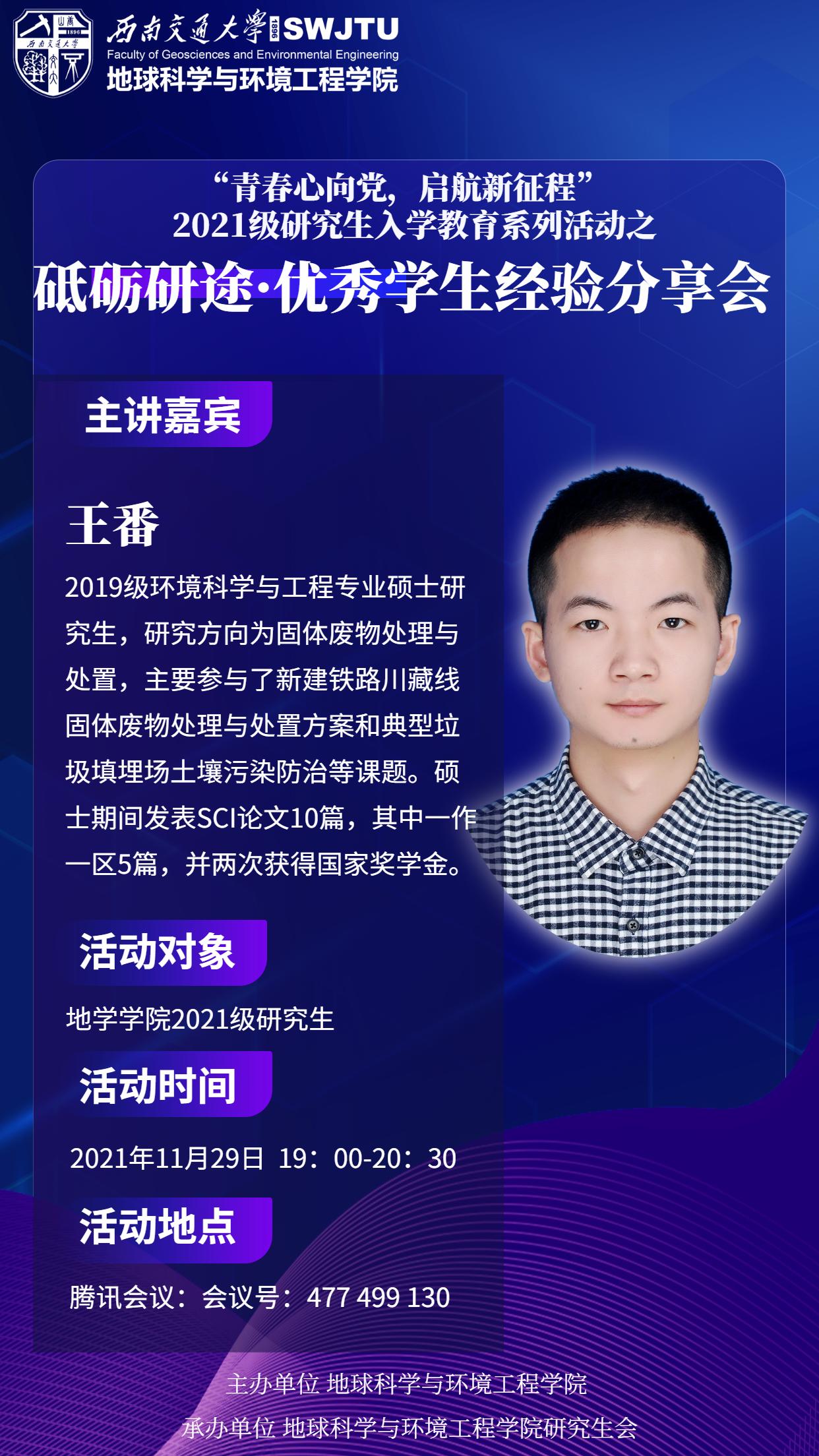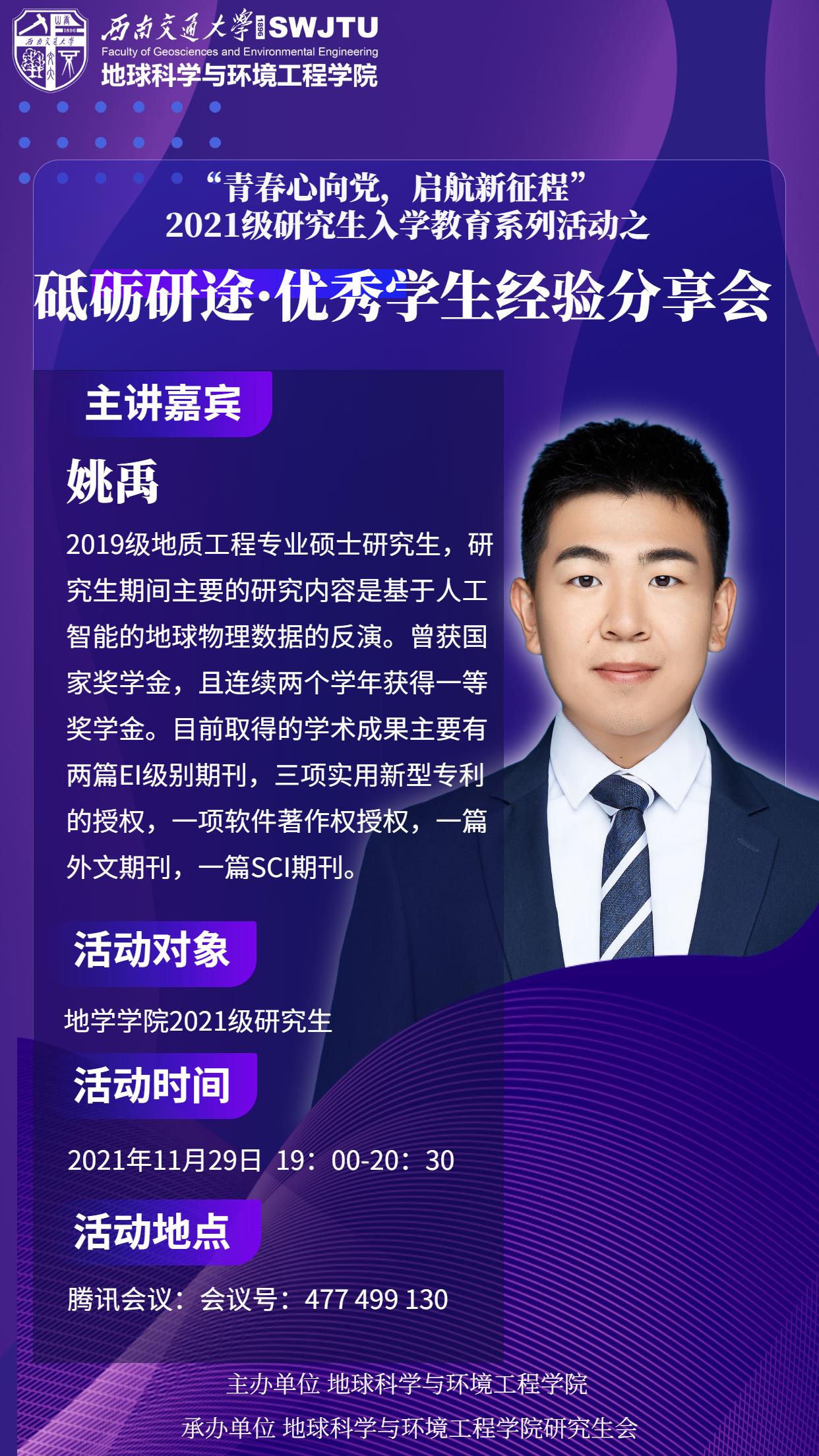 【砥砺研途】“青春心向党,启航新征程”2021级研究生入学教育之优秀学生经验分享会活动预告