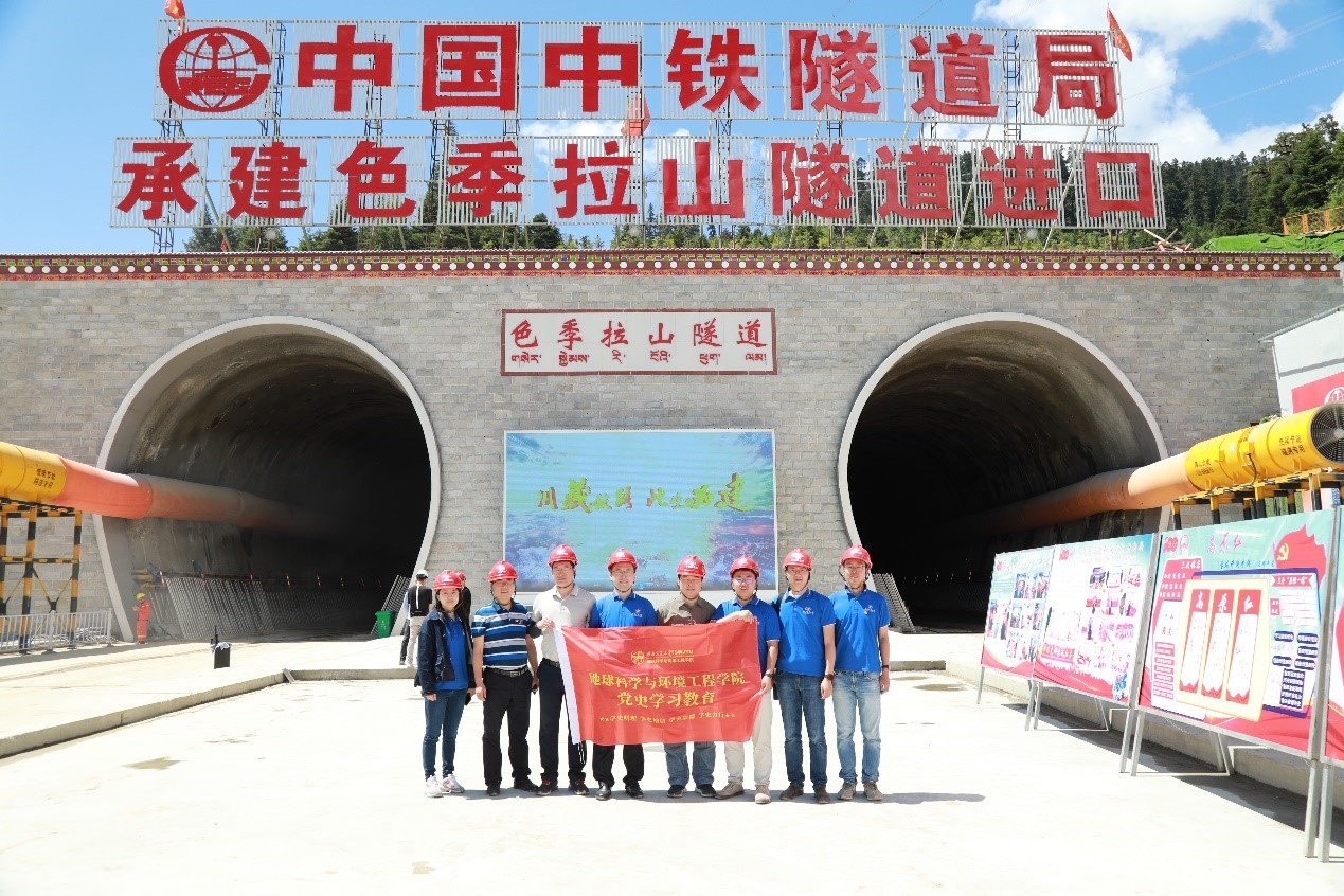 同时为充分将党建思政元素与我院专业学科建设相结合,关秦川书记率领师生党员走进中铁隧道局等施工单位,参观走访川藏铁路沿线的施工现场,交流探讨施工过程中面临的各类地质、环境问题,发掘传承“高原红”中的红色基因,立足专业,领悟川藏铁路中修建过程中发扬出的新时代“两路精神”。