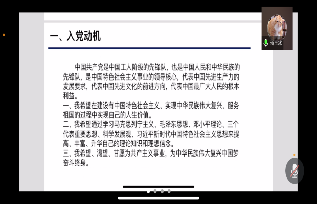 2021年10月21日14:00,研2019级地质一班党支部利用腾讯会议平台开展思政课共同学习活动。本次会议全体党员同志均准时参加。本次组织生活会由研19级地质一班党支部书记姬彦东主持。
