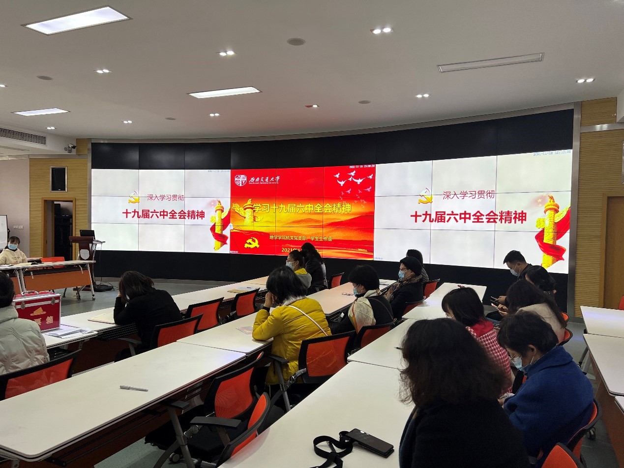 会议强调,要深刻领会把握党的十九届六中全会的重大意义、精神实质和实践要求,增强“四个意识”、坚定“四个自信”、做到“两个维护”,切实把思想和行动统一到党的十九届六中全会议题的重大政治考量上来,统一到学校和学院“十四五”发展规划的决策部署上来,埋头苦干、勇毅前行,确保党的十九届六中全会精神在各项工作开展过程中落地生根、开花结果。