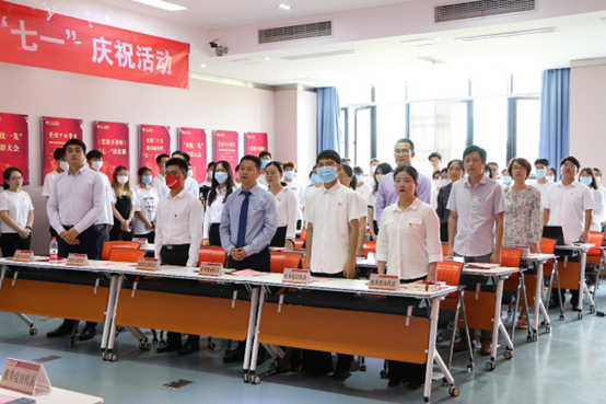 表彰过后,学院党委举行了“党旗下的誓言”——新党员入党宣誓和老党员重温入党誓词仪式,仪式由关秦川同志领誓,铮铮的誓言激励广大党员继承革命传统,牢记光荣使命,永葆党的先进性和纯洁性。