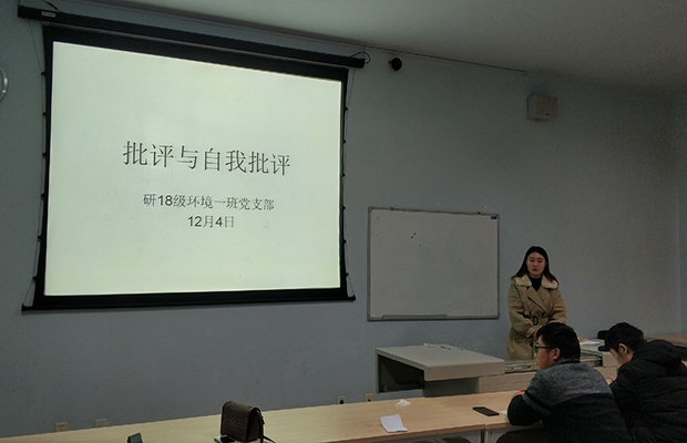 2019年12月4日晚上20:00点,研18级环境一班党支部于X9133召开组织生活会和开展民主评议党员工作。会议分为开展民主生活会,评议党员两个议程。会议由党支部书记刘静主持。