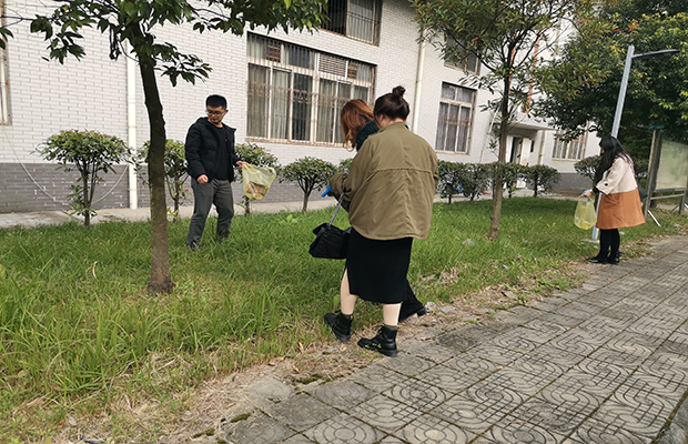 环境实验室门前草坪里的卫生死角里存在着很多的垃圾,极大地影响了实验室的形象。为此,在陈俊文同志和赵聪同志的带领下,将草坪和道路划分为若干区域,两人一组对垃圾进行了清理。在劳动过程中,大家充分发挥了不怕脏、不怕累、肯吃苦的精神,对存在的垃圾进行了地毯式清理。经过近半小时的紧张劳动,原来遍布垃圾的地面焕然一新。