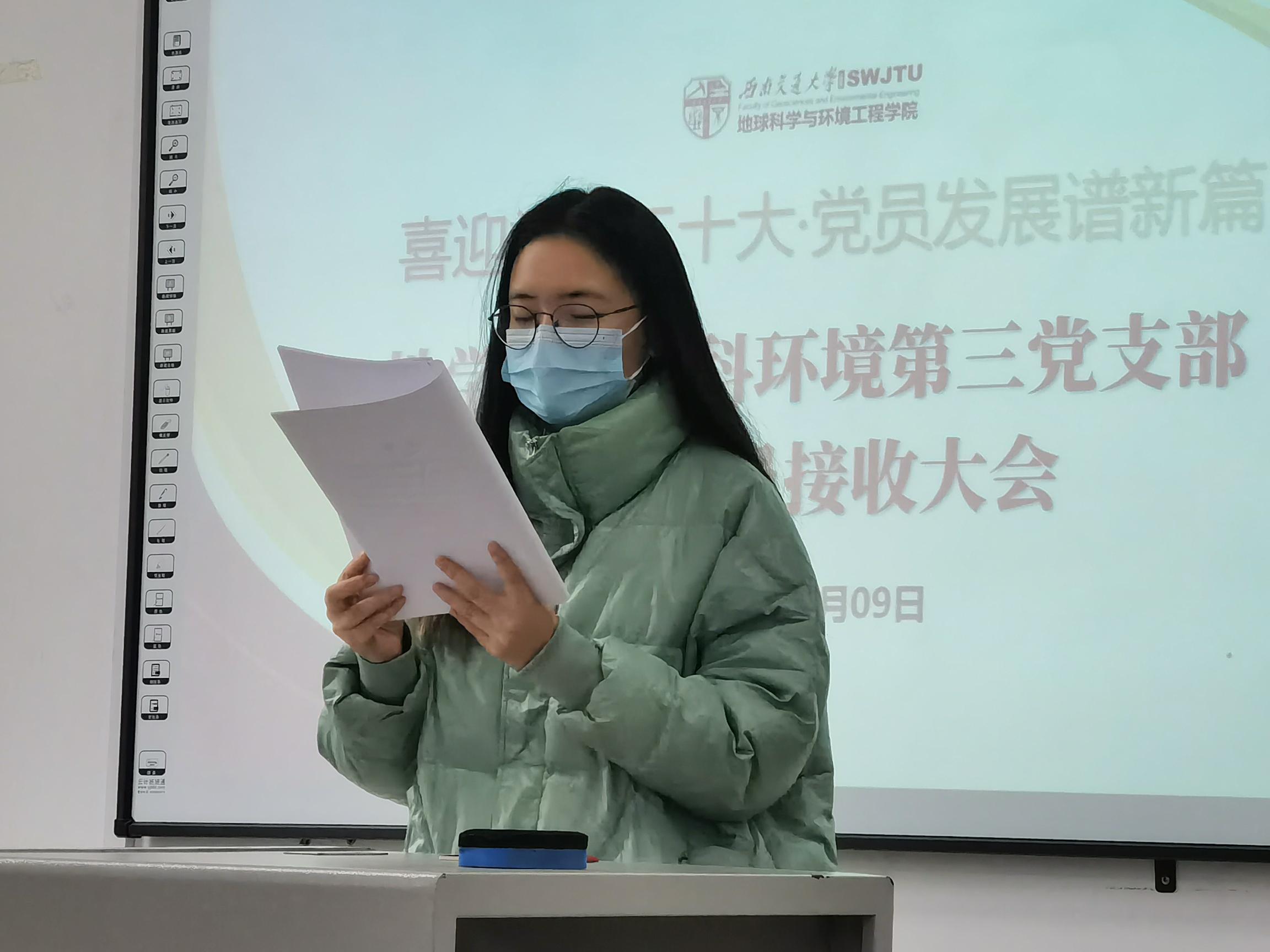 本科环境第三党支部于2022年12月9日14:00在X4134召开预备党员接收大会。本次会议由本科环境第三党支部副书记弓赛同志主持。