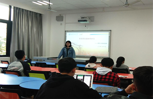 本18级党支部在X4137召开“不忘初心,牢记使命”专题学习教育活动。本次活动将进行两个专题的学习,一是学习宣传党的十九届四中全会精神,二是认真组织党支部成员参观“伟大历程、辉煌成就——庆祝中华人民共和国成立70周年大型成就展”网上展馆。本次活动旨在于提高支部同志们对于“不忘初心,牢记使命”号召的响应度以及对我国70年来所创造的辉煌成就的深刻人生。本次活动由支部书记孙惠敏同志主持。