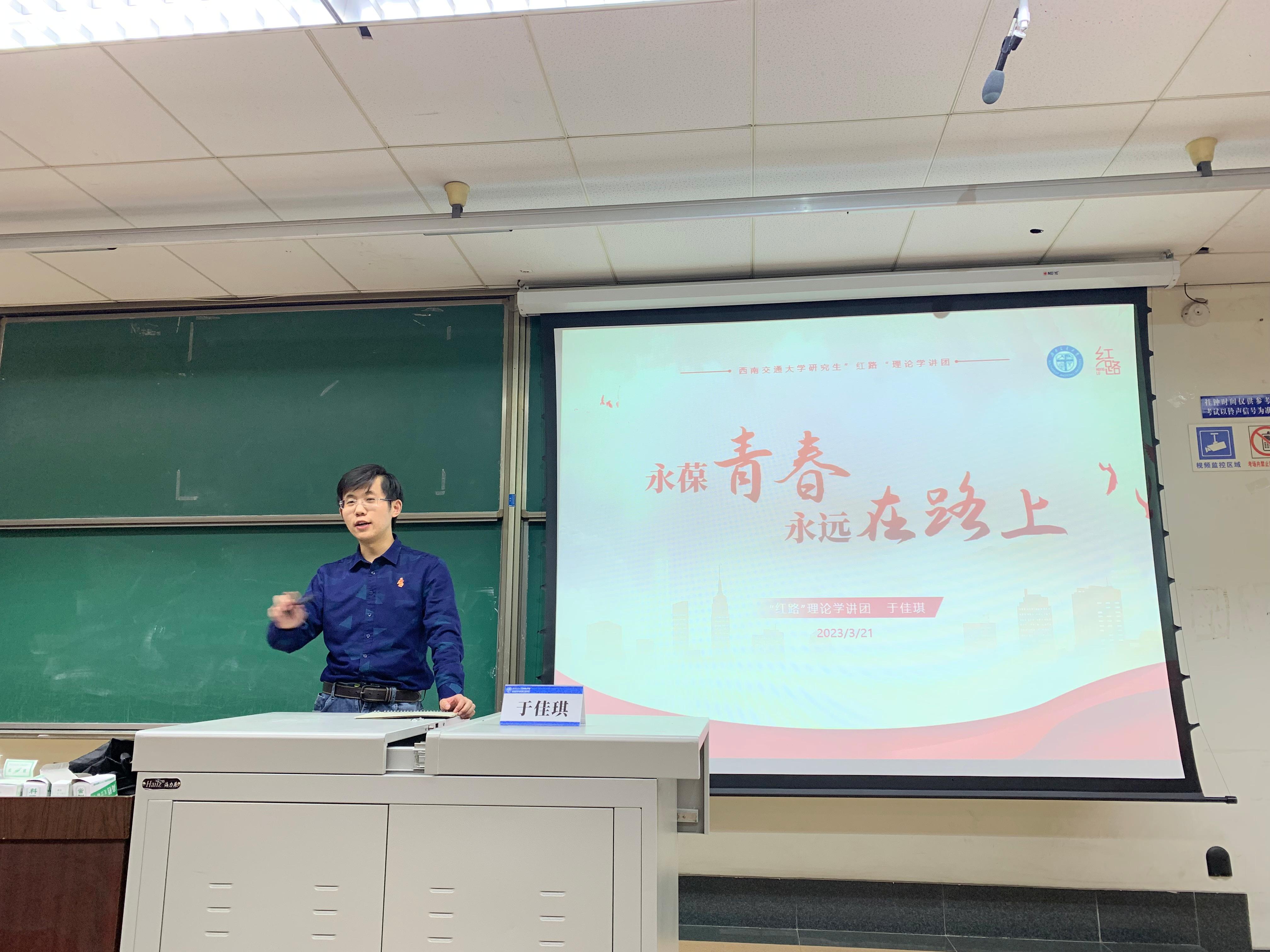 邀请学校研究生“红路”学讲团成员开展“奋进新征程·勇担新使命”——二十大精神主题宣讲。本次活动由研究生“红路”理论讲学团成员童心豪、叶文龙、于佳琪主讲,22级研究生辅导员李林遥主持,18H