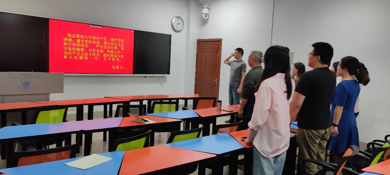 支部党员重温入党誓词。全体教师党员举起右手,握紧拳头,重温入党誓词。在铿锵的誓言中,党员同志再次接受心灵的净化和洗礼,理想信念更加坚定。教师党员们纷纷表示,要牢记共产党员的政治责任和历史使命,不断保持共产党员的先进性,以更加饱满的热情投身到教育工作中去,切实发挥先锋模范作用,永葆共产党员的政治本色。