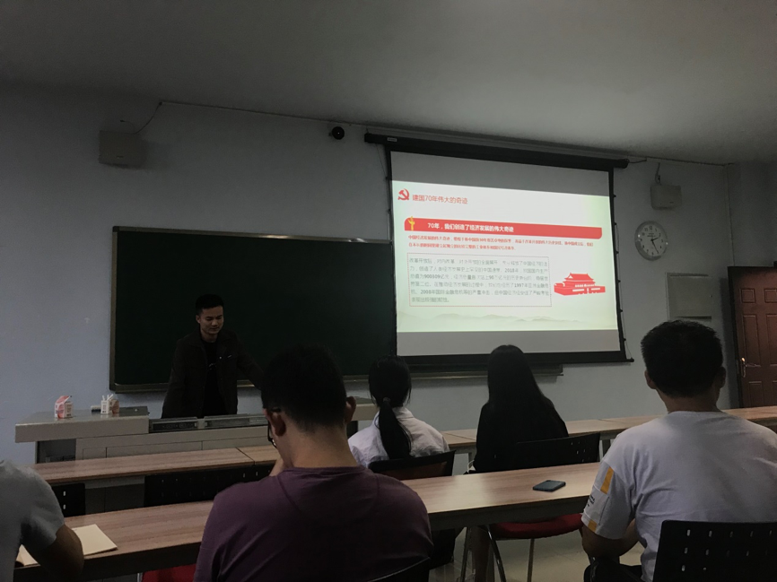 为庆祝中华人民共和国成立七十周年,并加深各位党员同志的爱国主义精神,2019年9月25日下午18点30分,18H