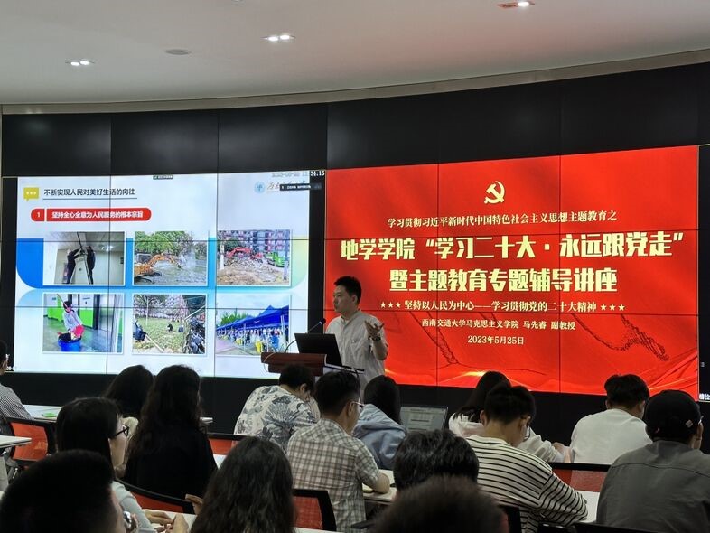 讲座最后,马老师呼吁在座各位党员要以身作则,从身边小事做起,在班级、宿舍、社团中,在日常的学习、科研、生活中切实发挥党员的先锋模范带头作用,聚焦身边同学的“急难愁盼”问题,实实在在地践行“坚持以人民为中心”的理念,用实际行动为第二个百年奋斗目标贡献自己的青春力量。