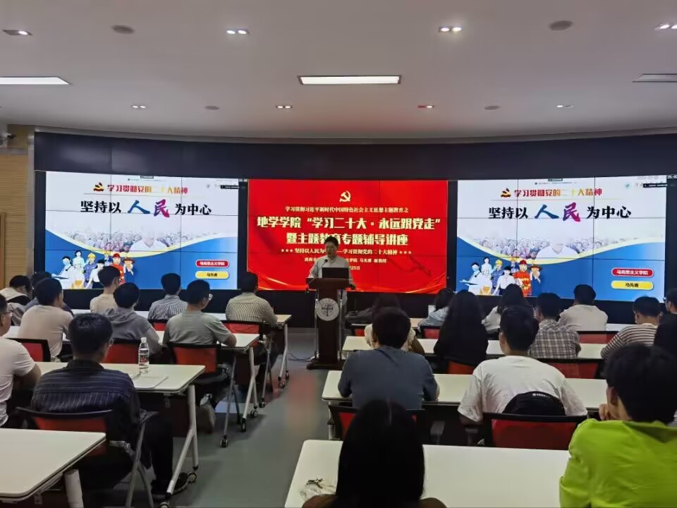 在X4243会议室举行“学习二十大·永远跟党走”暨主题教育专题辅导讲座,讲座由学院学生党建负责人文强主持,马克思主义学院副教授、18H