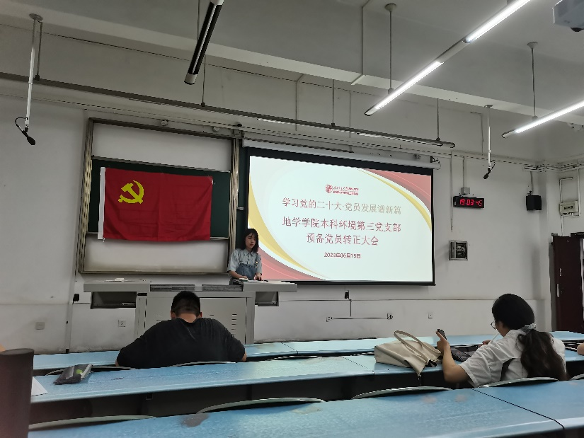 本科环境第三党支部于2023年6月15日 19:30在X2213召开预备党员转正大会,本次会议由钟若兰同志主持。