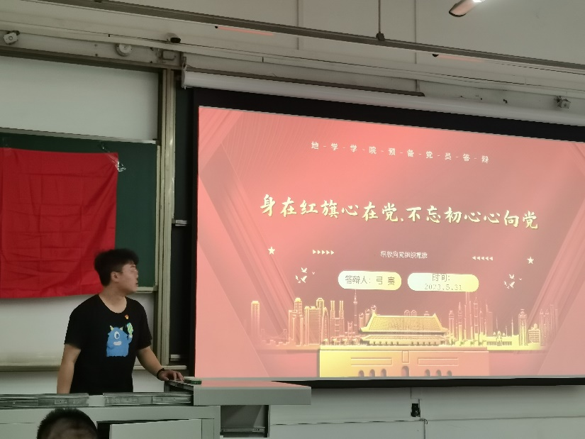 首先,由预备党员依次进行PPT汇报答辩,从思想政治、学习科研、志愿服务、实践活动等方面对自己在预备党员期间进行了总结与反思,并正式向党组织提出转正申请。几位同志都表示自己将在今后的工作、学习、生活上更加严格要求自己,不断加强党性修养,努力做好本职工作,全心全意为人民服务。