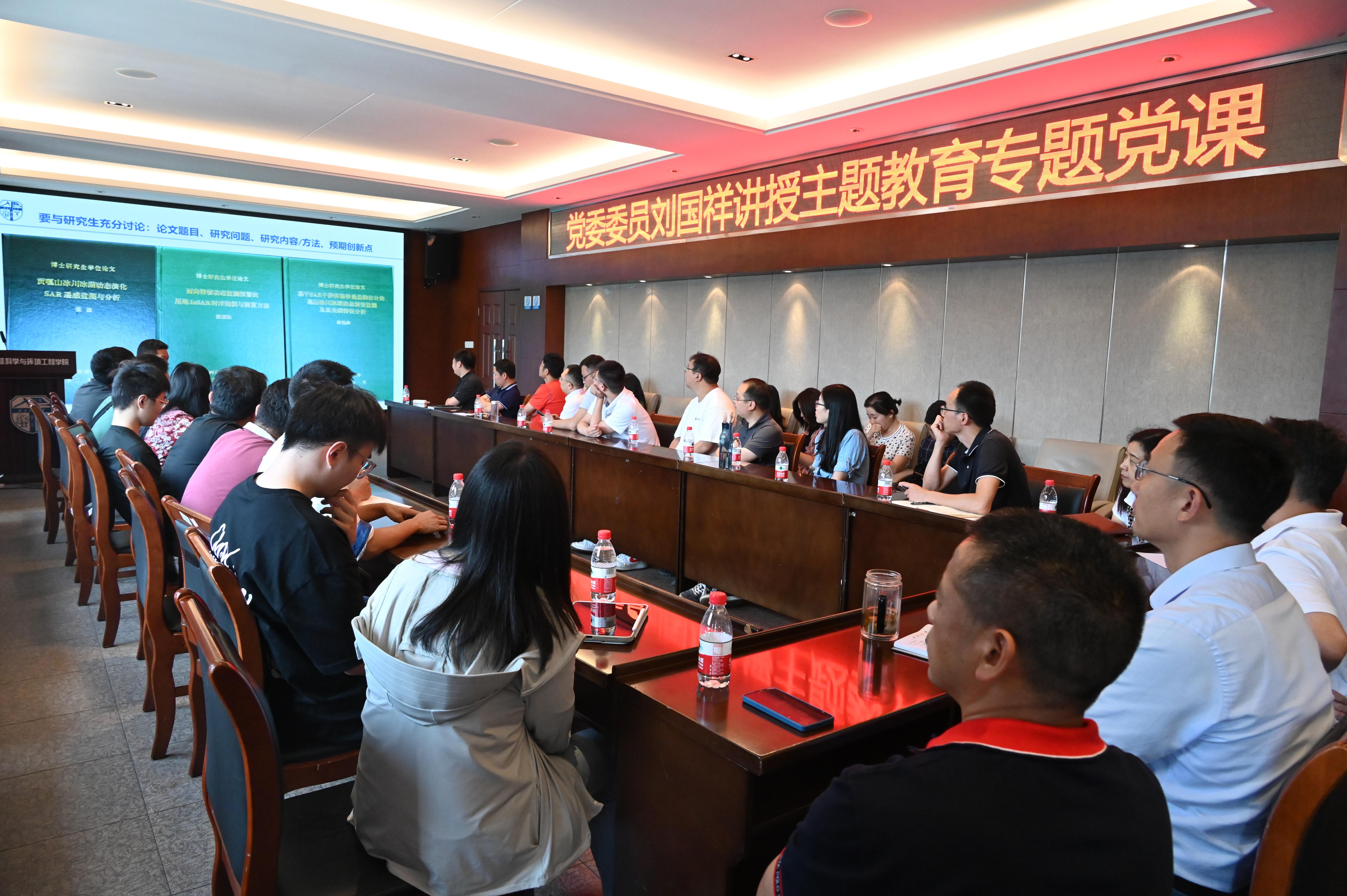 为推动学习贯彻习近平新时代中国特色社会主义思想主题教育走深走实,牢牢把握主题教育“学思想、强党性、重实践、建新功”的总要求,2023年6月21日下午,地球科学与环境工程学院党委委员、院长刘国祥同志结合学院在犀浦校区4520会议室为教工测绘遥感信息、教工行政、博士测绘第二党支部讲授主题教育专题党课,党课主题为“优秀研究生导师及团队建设实践与思考”。