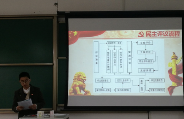 3月11日上午11:30,研18级地质一班党支部民主评议大会在X9101举行,参加会议的有9名正式党员,1名预备党员,应到12人,实到10人。会议由支部书记张绍科主持。