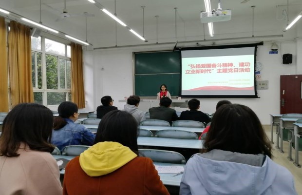 2018年10月18日,研16级环境1班、2班党支部在犀浦校区x2223教室联合开展“弘扬爱国奋斗精神、建功立业新时代”主题党日活动,深入领会习近平总书记的重要指示精神,会议由环境二班易小莹同志主持。
