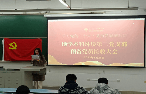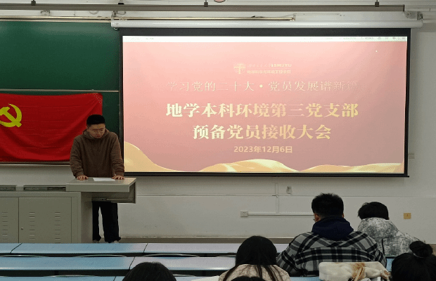 本科环境第三党支部于2023年12月6日19:00在X2213召开预备党员接收大会。本次会议由本科环境第三党支部书记孙启轩同志主持。