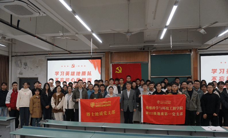 2023年11月中旬,博士地质党支部首先联合研22、23级地质党支部开展了“学习英雄地质队,不忘初心勇担当”专题党课。邀请学院党委委员、地质系胡卸文教授为支部成员讲授习近平总书记给山东省地矿局第六地质大队全体地质工作者的回信精神,李四光精神以及黄大年精神。胡老师充分结合自己的地质工作中的感悟,勉励大家要能吃苦、善吃苦,在一线基层的地质工作中不断增强自身党性修养。通过专题党课,支部党员纷纷表示将在后续的地质科学研究和实践中坚持初心,勇于担当。