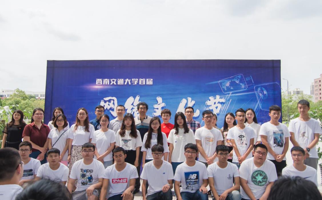 首届网络文化节的宣传展板前进行了合影留念,并相互交流了学习心得。