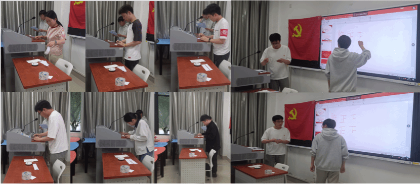 最后,与会正式党员采取无记名投票方式,依次上台对陈炜同志能否入党进行表决,由刘洪江同志监票和刘刚同志计票。罗嘉潍同志的主要接收流程同上,经过统计支部将两位同志的计票结果先后公布:同意接收陈炜同志的有8名,不同意接收和弃权的0名;同意接收罗嘉潍同志的有8名,不同意接收和弃权的0名。同意票数超过有表决权党员的半数,表决通过。