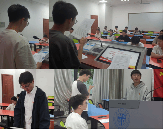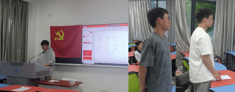 对2024-01期拟接收为中共预备党员名单公示(4月15日至19日)无异议后,研22级地质第一党支部于4月25日19:00,在X4134召开内容为关于接收罗嘉潍、陈炜同志为中共预备党员的会议。会议由党支部组织委员刘刚同志主持,正式党员应到11人,实到8人,符合组织规定,会议有效。会议在清点到会人数,介绍大会的议题和拟接收名单后,逐个、依次进行了陈炜、罗嘉潍两位同志的接收议程。