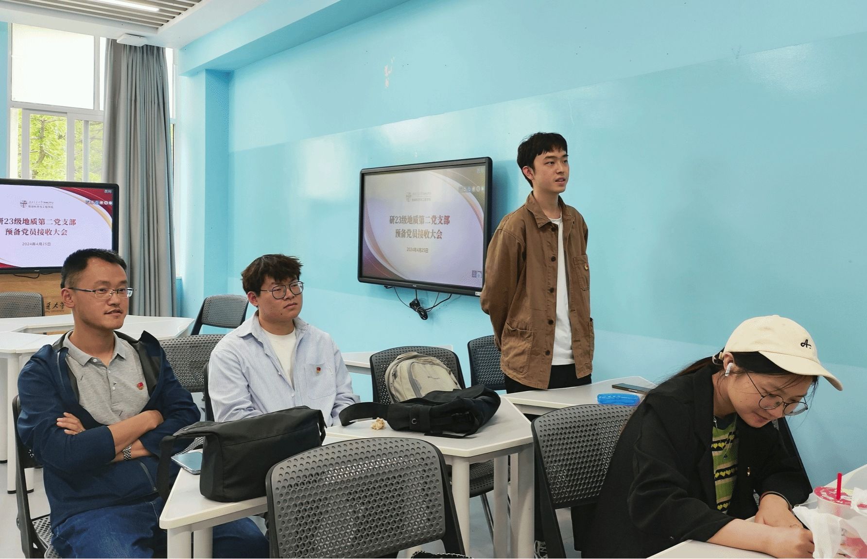 为切实做好2024年发展党员工作,提高党员发展质量,2024年4月25日,研23级地质第二党支部在J4205内举行预备党员接收大会。此次大会的主要议题是讨论关于接收朱茹洁同志为预备党员的问题。
