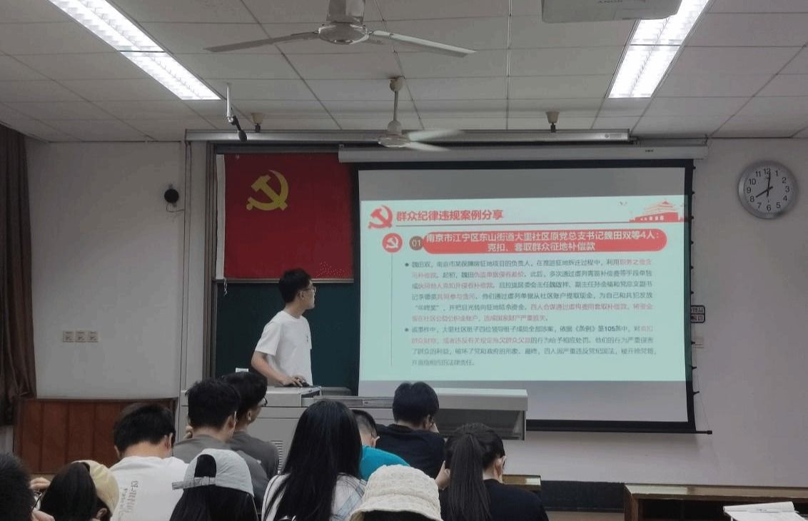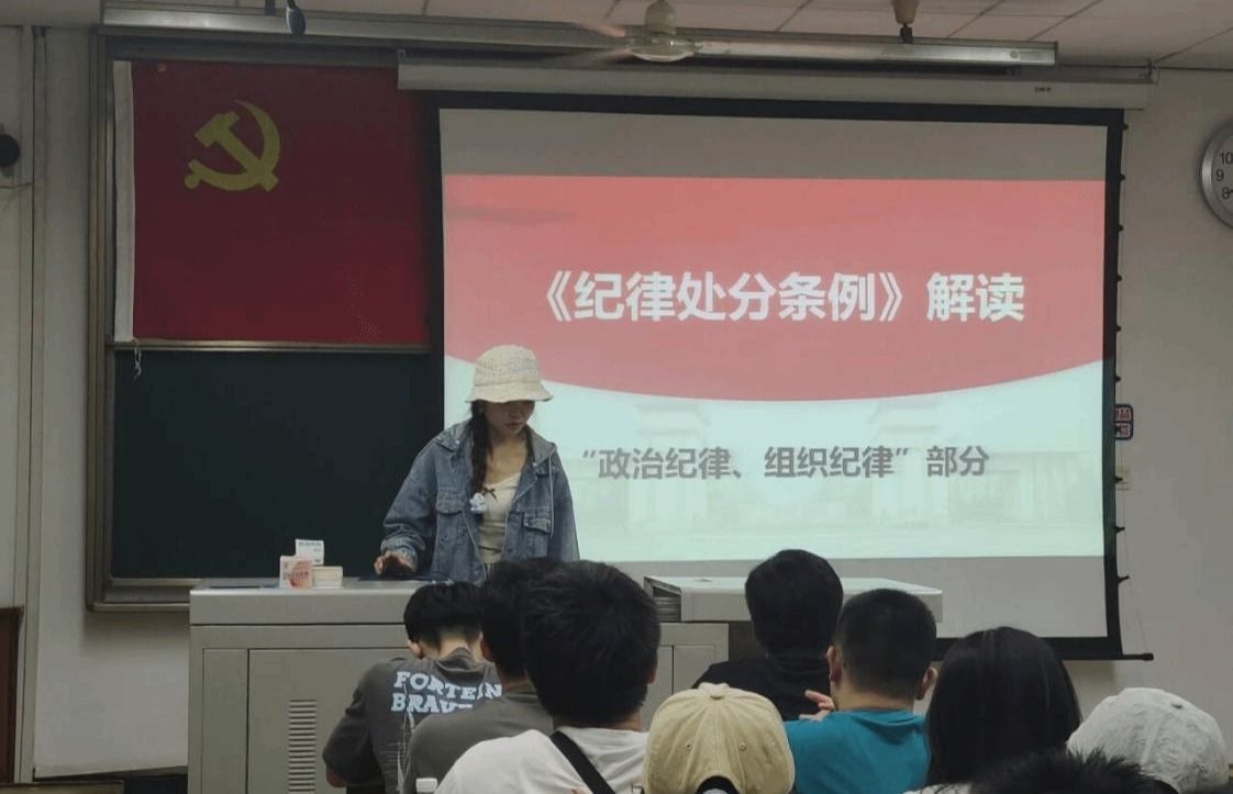 随后,谢詹同志分享了他们小组在廉洁纪律和工作纪律两个方面的学习收获,总结了廉洁自律不仅是对个人品行的锤炼,更是对党忠诚的体现;而密切联系群众,则是党的根本工作路线,是我们党始终赢得人民支持和信任的关键所在。通过对张洪亮和魏田双等人的案例的分析解读,为同学们带来了一场生动切实的党纪教育。最后播放的廉洁警示教育片也让支部成员认识到贪腐只在一念之间,党员同志必须加强自我约束,主动接受监督,做到心中有戒、行有所止。