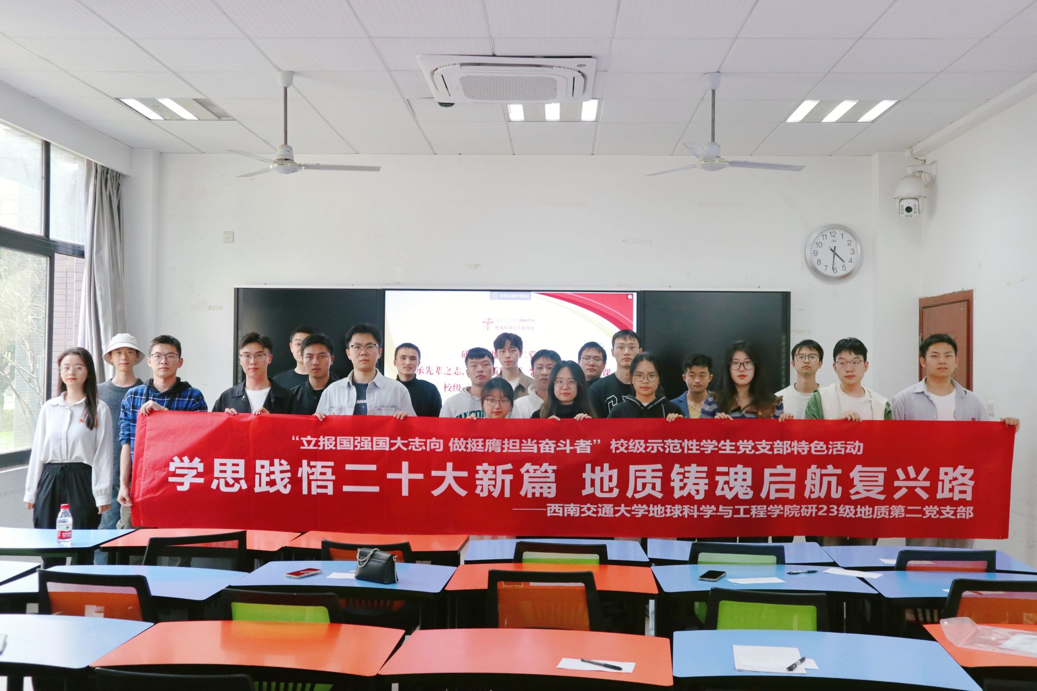 为深入学习贯彻习近平新时代中国特色社会主义思想和党的二十届三中全会精神,学习贯彻习近平总书记关于教育的重要论述和全国教育大会精神,落实立德树人根本任务,增强支部成员对国家发展战略的理解,培养科学家精神和地质精神,研23级地质第二党支部于2024年10月28日在犀浦校区X4134教室开展了“学思践悟二十大新篇,地质铸魂启航复兴路”校级示范性学生党支部特色活动。