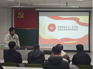 活动伊始,杨冰倩老师对全体支部成员进行了主题为“党建引领促学风,党员勤学做先锋”的学风考纪主题教育,杨冰倩老师组织全体同志认真学习了《18H