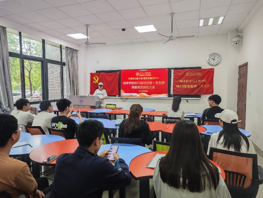 为做好2025年发展党员工作,切实提高党员发展质量。研23级地质第一党支部于2025年5月8日10:00在X4137召开2025-01期预备党员接收大会,本次会议由党支部书记王睿同志主持,学院党委专职组织员李晓宇老师与会参与指导,支部成员总计15人参会。