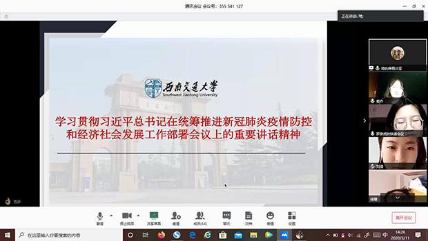 本科2016级联合党支部于2020年3月11日14:00召开了以“共同战疫中国力量,爱国力行吾辈担当”为主题的云上组织生活会。此次云上组织生活会选用腾讯会议平台,主讲人为翟琦老师和谷思文老师,主持人为罗彦虎同志和社土么惹作同志。