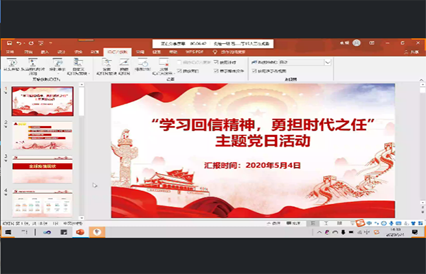 袁媛首先从分析全球疫情现状、总书记的回信、抗疫中的青年力量、时代之任四个方面逐一展开此次活动。她通过互动来帮助同学们加深对总书记的书信的认识。她通过播放主题视频,让同学们深深地感受到青年们在抗疫过程中的无私奉献精神,从而明确时代青年的责任担当。