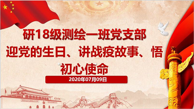 为贯彻落实党中央关于常态化疫情防控的决策部署,充分发挥基层党组织战斗堡垒作用和师生党员先锋模范作用,让党旗始终高高飘扬在疫情防控、返校复学、事业发展全过程全方位,并结合中国共产党99周年华诞之际。2020年7月9日19:30,地球科学与环境工程学院研18级测绘一班党支部在腾讯会议平台上开展主题教育活动,活动主题为“迎党的生日,讲战疫故事、悟初心使命”,活动由支部的谭鑫、项凡、李奇芪三位同志主讲。