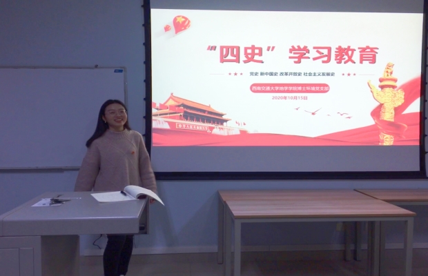 博士环境党支部于2020年10月15日在X9538开展了主题为“青春的我,信仰的光”的“四史”知识学习教育活动。支部党员通过学习了解了我们党成立以来、新中国成立以来以及改革开放以来的重大事件,了解我们党领导人民进行艰苦卓绝的斗争历程,了解中国近代以来的斗争史、我们党成立以来的奋斗史、新中国成立以来以及改革开放以来的发展史。