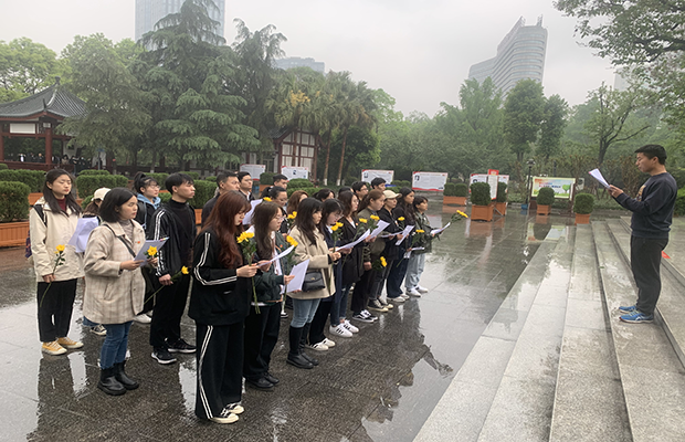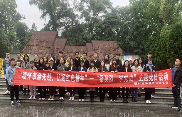 为深入贯彻习近平总书记关于缅怀先烈、崇尚英雄的重要论述,更好地发扬革命传统,弘扬英烈精神,传承红色基因,2021年4月10日上午,研20级环境三个班级组成的联合党支部在成都市十二桥烈士墓举行“缅怀革命先烈,弘扬红色精神”—“祭英烈,学党史”主题党日活动(图1,2)。