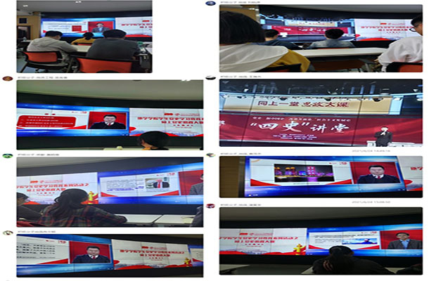 本次思政大课的主要内容为“四史”中的党史,主讲老师为北京师范大学的赵朝峰老师,武汉大学的卢勇老师和南京航空航天大学的何畏老师。本支部8位入党积极分子在学院组织下于X4243观看直播,同时,其他党员同志在线上按时观看。下图为入党积极分子及党员同志观看打卡。