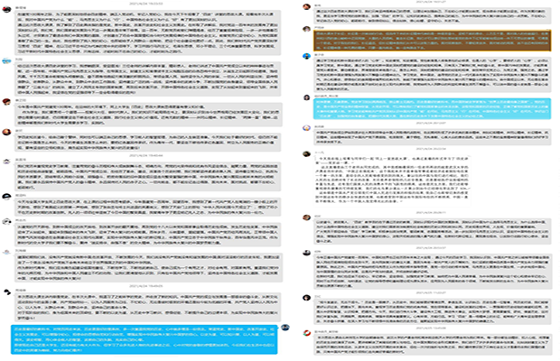 在直播结束后,各位党员同志在支部群中分享了的观看心得。曹儒博同志由前辈党员们坚守初心、为党和国家奉献了自己的一生想到了自己入党的初心——用自己的力量给予人民群众一些帮助并把这个社会建设得更好一些。周仪雯同志表示,党的历史,是中国共产党宝贵的精神财富,从党史开局,可以帮助我们了解党和国家事业的来龙去脉、汲取党和国家的历史经验、正确了解党和国家历史上的重大事件和重要人物。