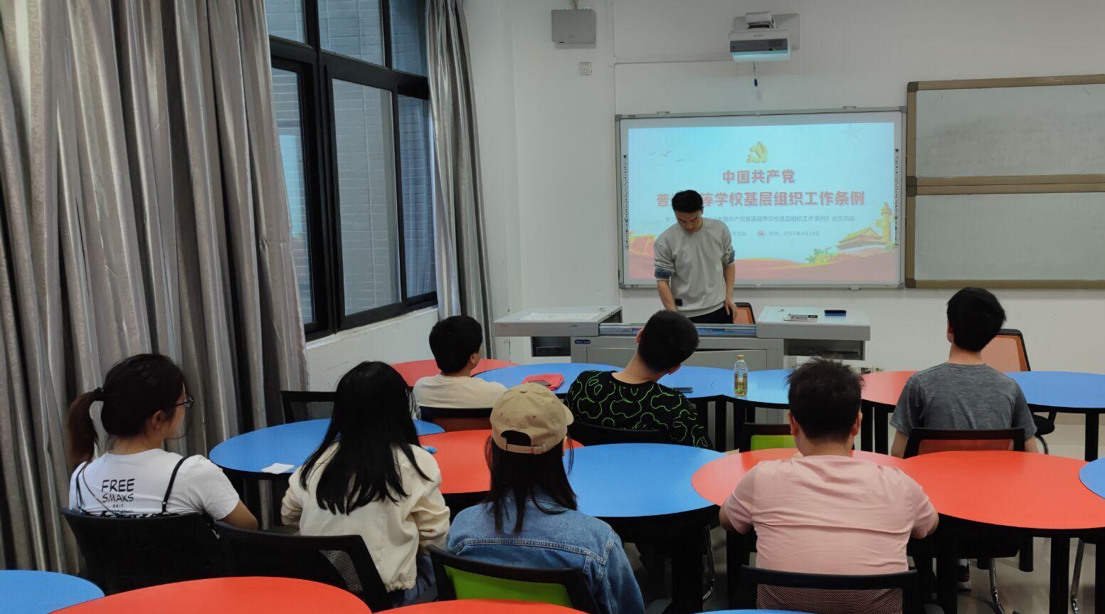 研19级测绘2班党支部于X4137教室召开全体党员大会,主要学习修订后的《中国共产党普通高等学校基层组织工作条例》(以下简称《条例》)以及举行“积极分子推优入党答辩”大会。大会由王所智同志组织召开,支部全体党员与积极分子参加。