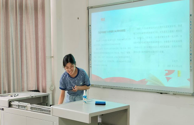 值厦门大学建校100周年之际,习近平总书记致信祝贺厦门大学建校100周年,向厦门大学全体师生员工和海内外校友,致以热烈的祝贺和诚挚的问候。2021年4月15日下午14:00,在犀浦校区X4132教室,本18级第二党支部对贺信内容进行了深刻学习,并深入研究信中提到的厦门大学几大精神。本次主题党日活动由支部书记宋盼盼主持,由本18级第二党支部党史旗帜学习第三小组成员主讲,全体党员、党员发展对象和部分入党积极分子参加。