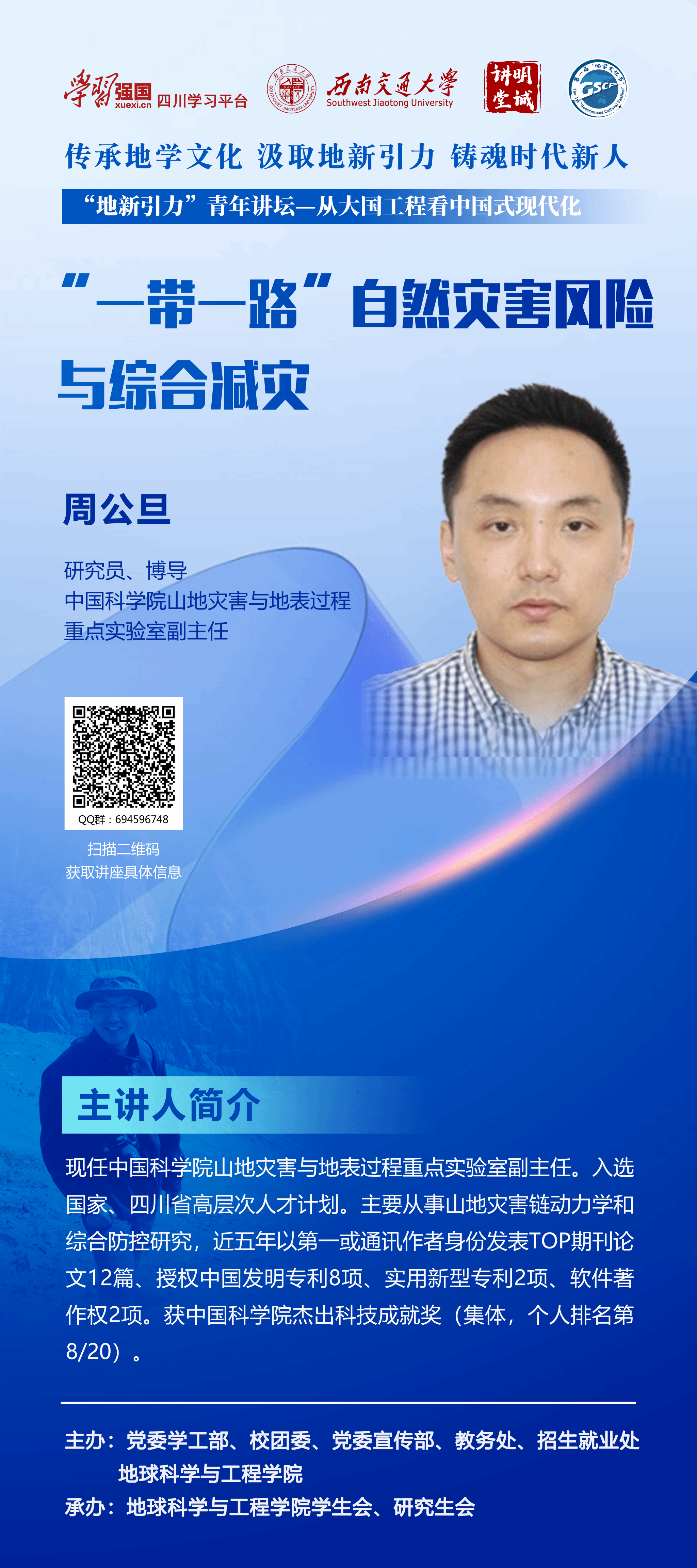 2.“地新引力”青年大讲堂——“从大国工程看中国式现代化”系列讲座既是思政教育,同时也是学术殿堂。本期讲座采取线下的方式进行(线下讲座容量为80人),同时活动也设有活动QQ群:(694596748)。