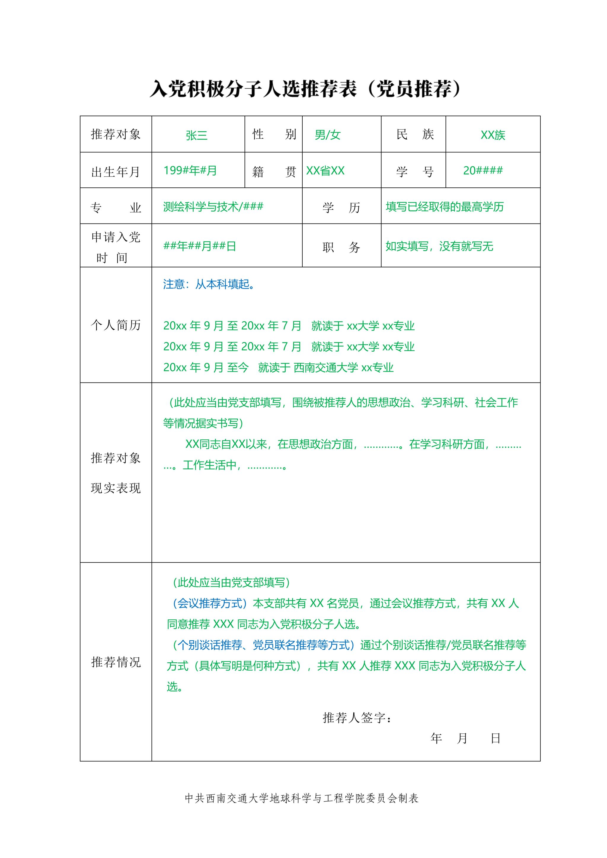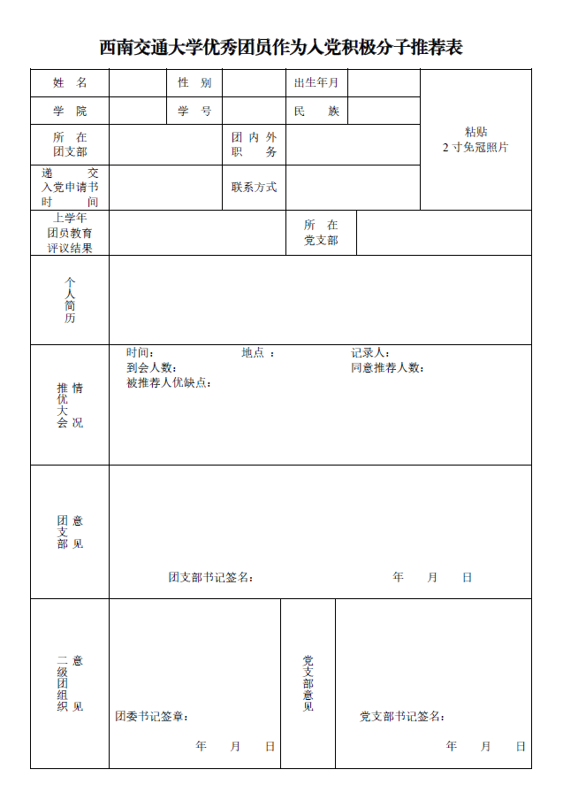 优秀团员作为入党积极分子推荐表撰写指南: