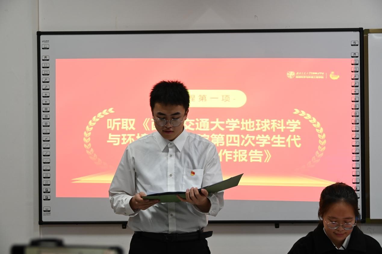 地球科学与环境工程学院第四次学生代表大会筹备工作报告》,向各位代表汇报本次会议筹备情况。