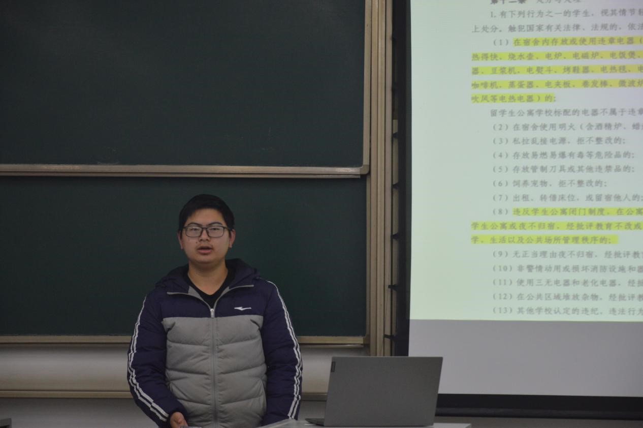 李承泽就查寝工作发言,并对新修订的《学生公寓管理方法》进行讲解。