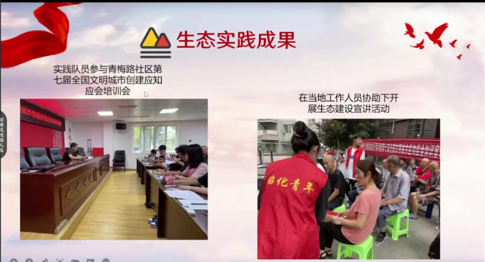 前往四川省广元市的实践35队代表苏瑾从四川省广元市的建设情况向大家展示了美丽中国的建设进度以及通过他们一点一滴的努力汇聚而成的收获。