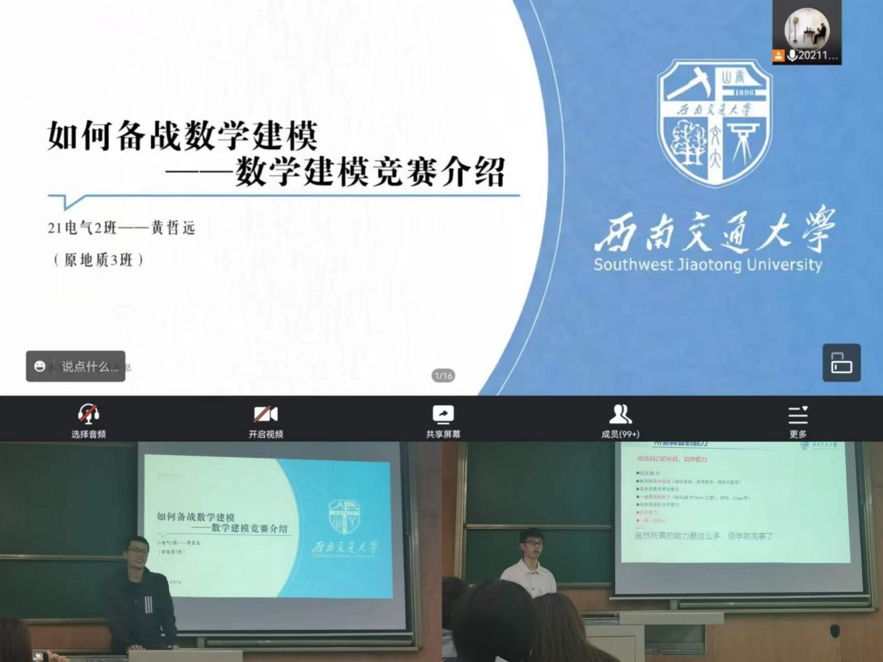 第一场讲座于10月22日晚在犀浦校区X4155线下线上同步进行。讲座主题为“数学建模竞赛经验分享”。18H