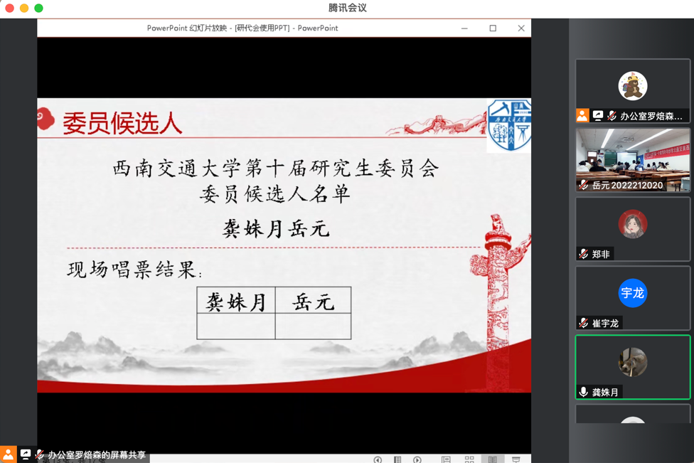 团委书记杨都强老师、团委副书记兼研会指导老师崔宇龙老师、12名研究生代表以及研会成员出席会议。