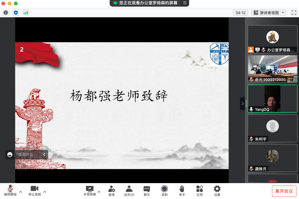 崔宇龙老师赞扬学院同学们对于抗击疫情规范守序,同时也希望研究生会能够继续强化自身服务意识、做好内部团结协作,努力培养研究生的创新意识、提高研究生的科研能力,用实际行动展现18H