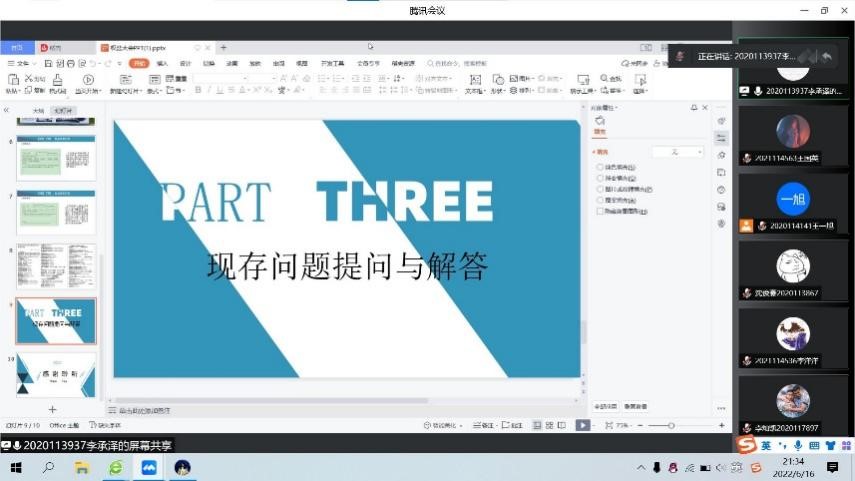 最后,学生园区与事务中心生活部部长李承泽针对现存问题进行了线上答疑,并再次提醒各生活委员及时关注反馈同学们的权益问题,学会积极主动地调度资源进行解决或及时反馈给学生会权益服务部。