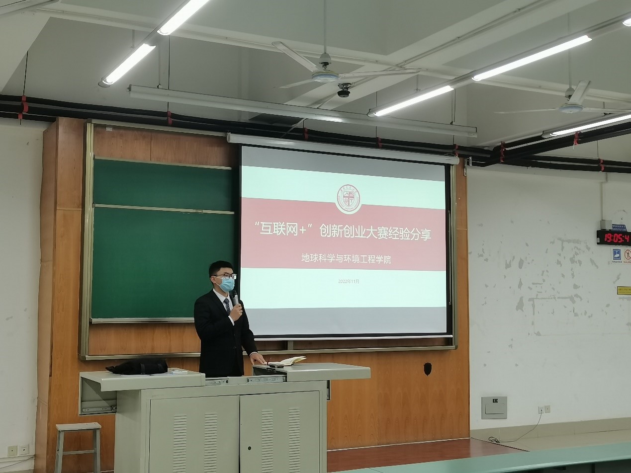 “互联网+”创新创业大赛经验分享交流会。本次活动特别邀请到参与第八届中国国际“互联网+”大学生创新创业大赛并斩获高教主赛道全国银奖的科研团队成员叶志虎同学做科研经验分享。