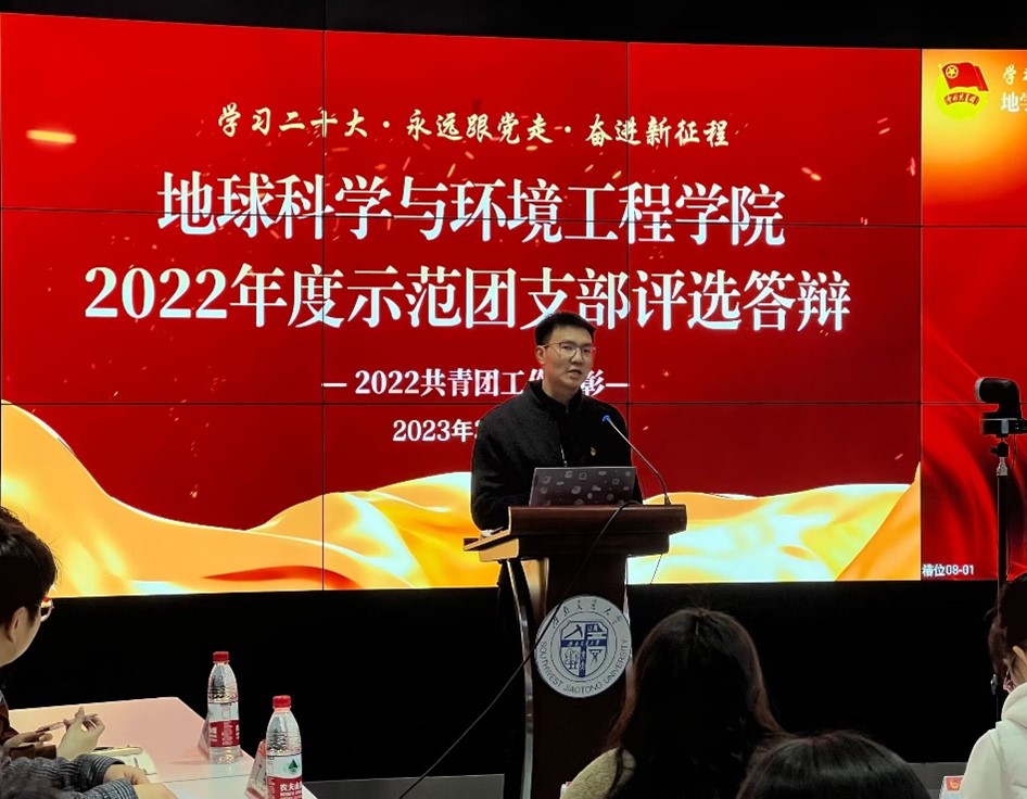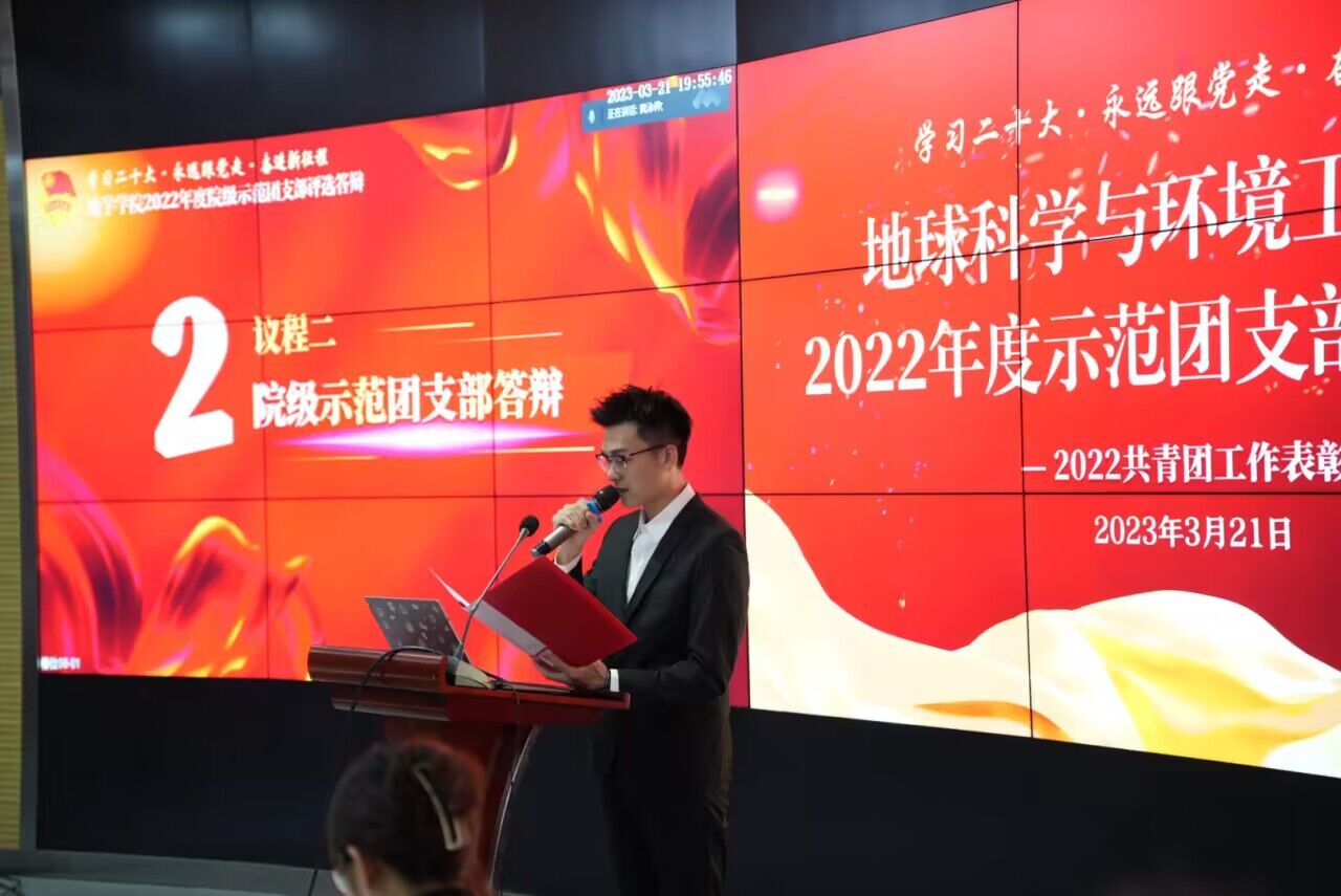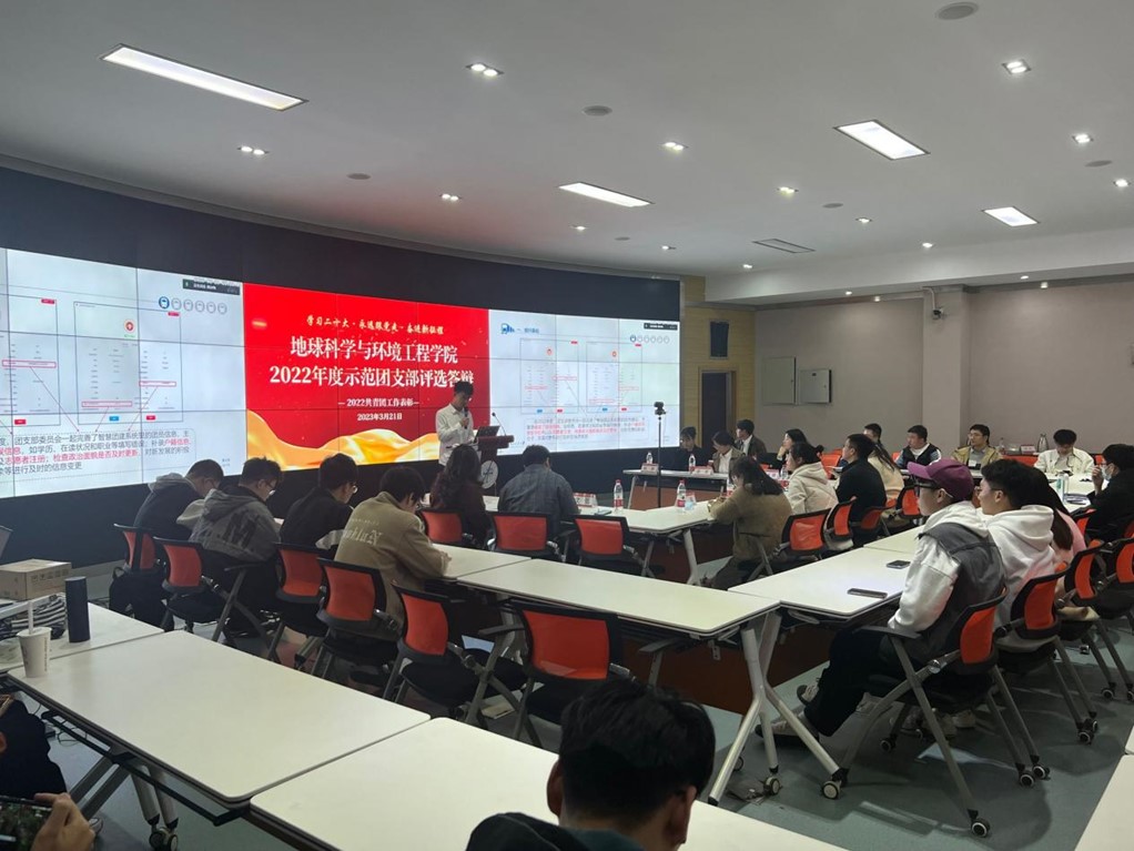 团委现开展2022年度共青团工作表彰——院级示范团支部评选答辩会,本次活动于2023年3月21日在犀浦校区X4243线上线下同步举办。地球科学与环境工程学院团委书记杨都强,院团委副书记翟琦、李婧,就业指导中心指导老师王琼,地新传媒指导老师杨冰倩,学习与科创中心指导老师梁爽,党建事务中心指导老师文强,学生党建工作老师史可心,团建中心指导老师张婷出席并担任评委,本科及研究生共计8个团支部参与答辩。本次答辩会由吴佳朔主持。